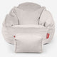 Má povrchovú úpravu odolnú proti škvrnám, ktorá pomáha pri údržbe, a všetky švy sú dvojito prešité, aby sa zabránilo akémukoľvek riziku roztrhnutia. Tento sedací vak má bezpečnostný zips, ktorý zabraňuje prístupu detí k výplni.