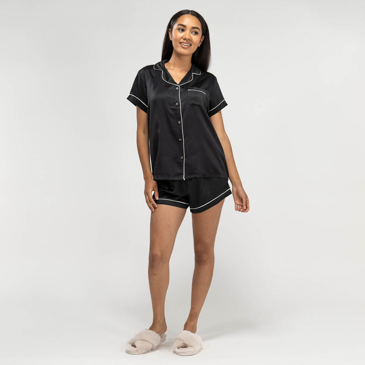 Dámske krátke saténové pyžamá - Čierna Fabric Close-up Image