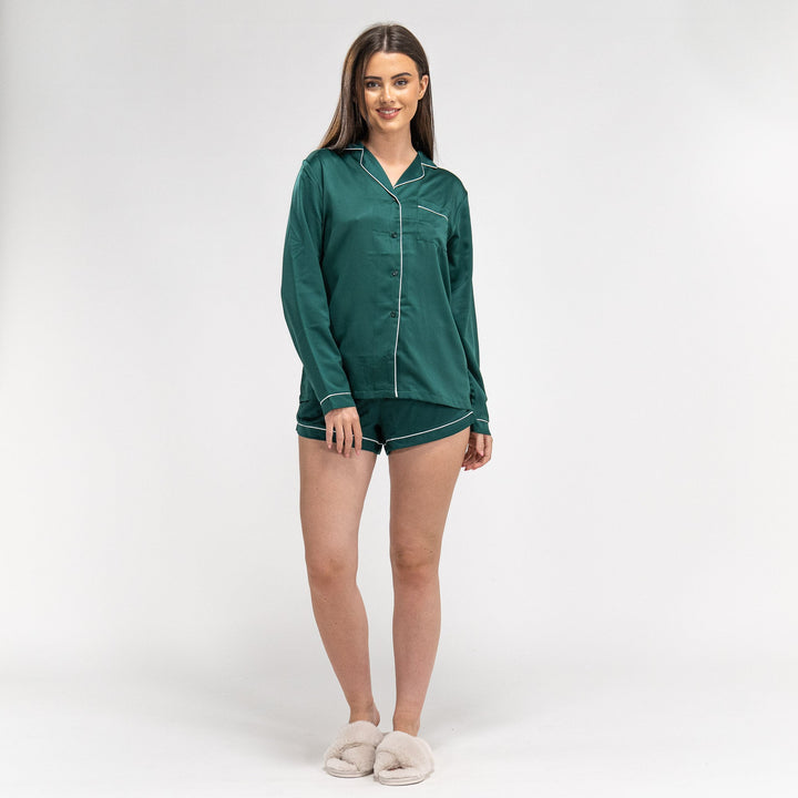 Dámske krátke saténové pyžamá - Zelená Fabric Close-up Image