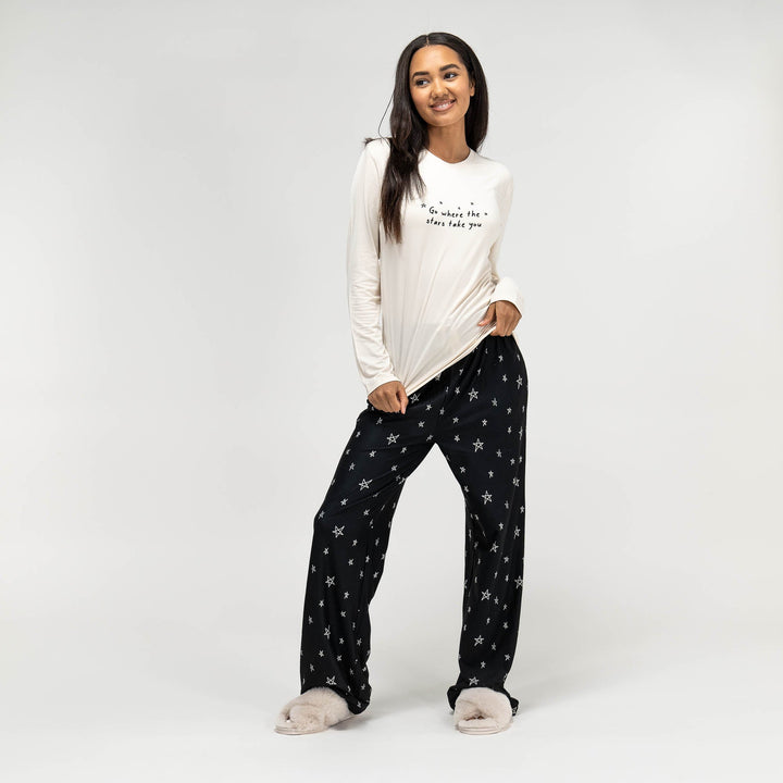 Dámske pulóvrové pyžamá Hviezdičkový slogan, veľkosť: S-L, Smotanová / Čierna– bigberthaoriginalslovakia