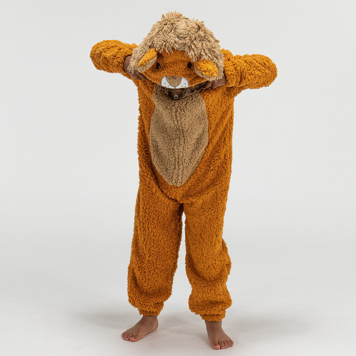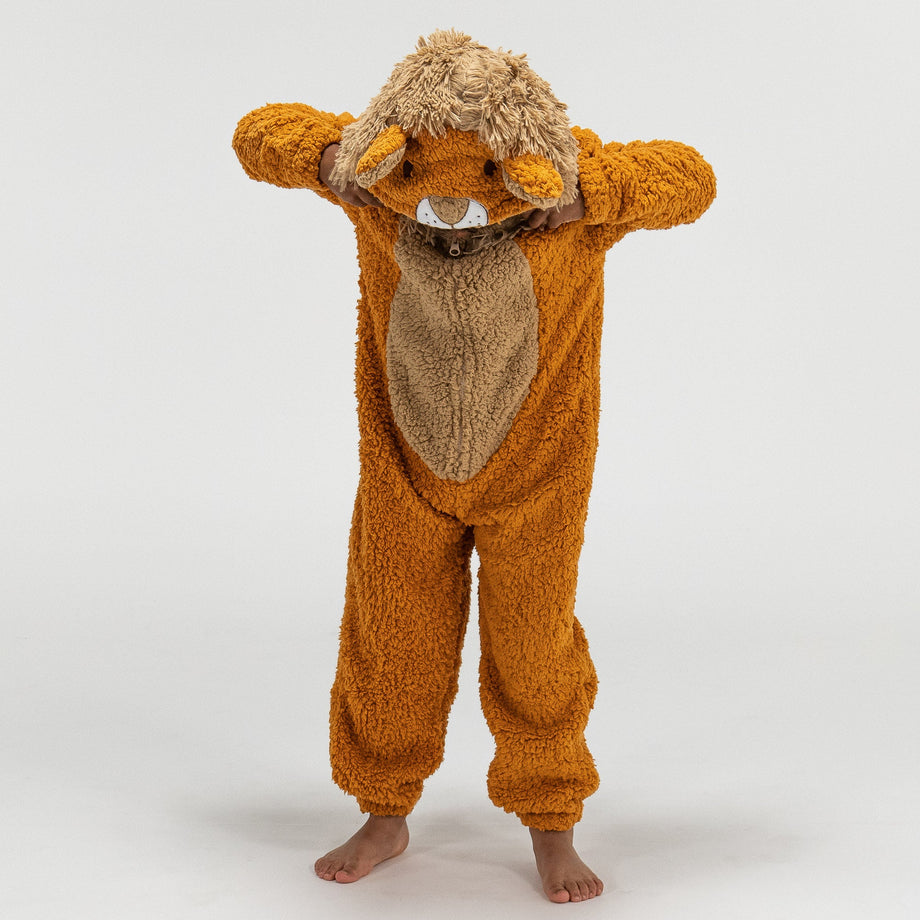 Detský zvierací flísový overal Onesie s kapucňou Lev, 5-10 rokov, Oranžová– bigberthaoriginalslovakia