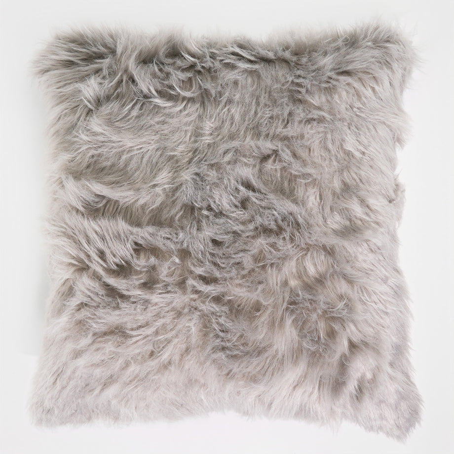 Extra veľký dekoračný poťah na vankúš 70 x 70 cm Mongolská Umelá Kožušina Šedá