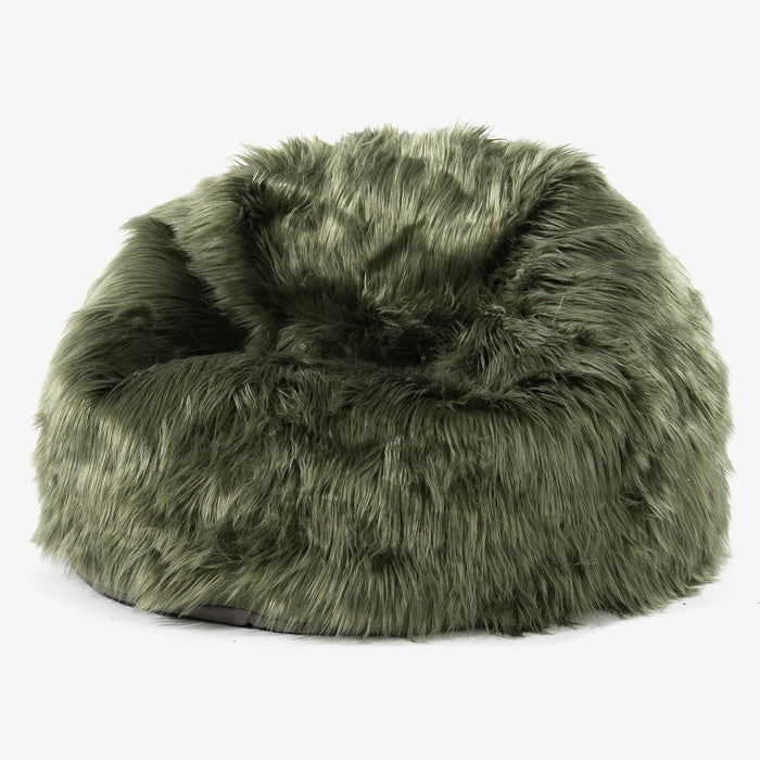 Klasická stolička sedací vak Mongolská Umelá Kožušina Šalviová zelená
