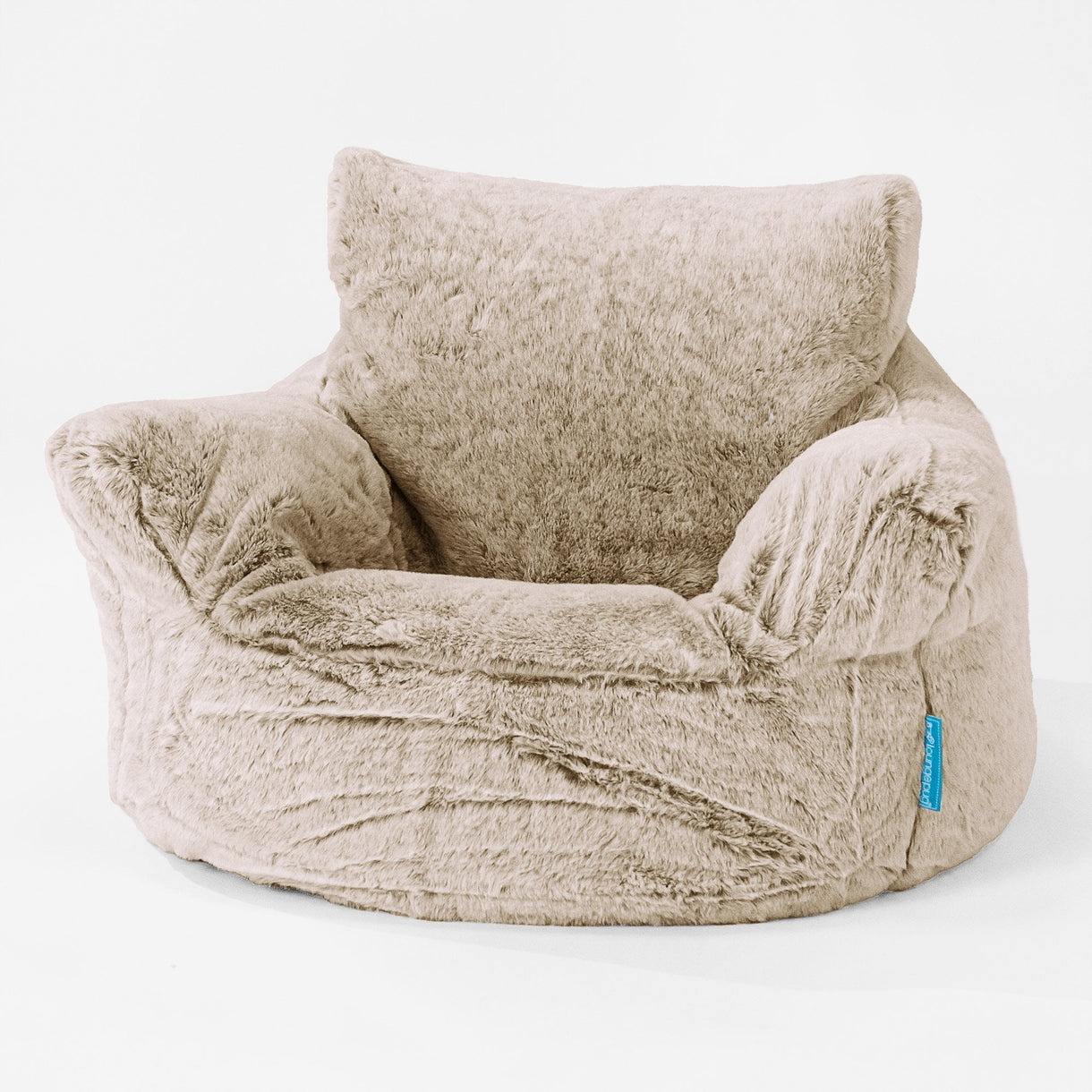 Lounge Pug, Falošná králičia kožušina Zlatohnedá Kreslo sedací vak pre batoľatá vo veku 1-3 rokov, Sedacie vaky pre deti– bigberthaoriginalslovakia