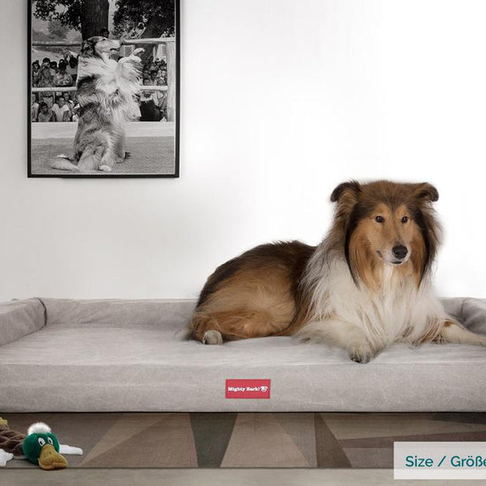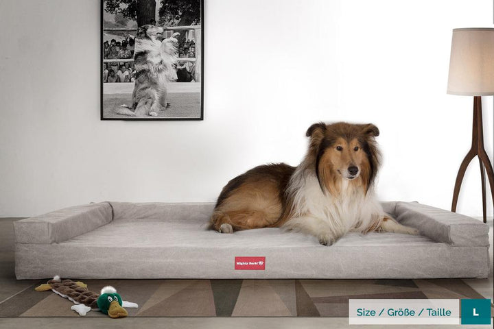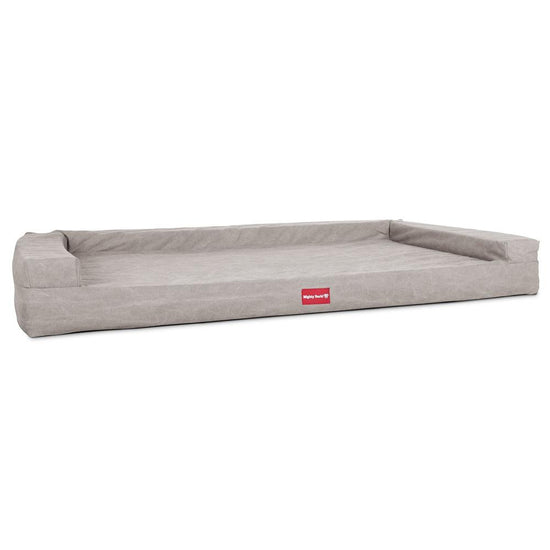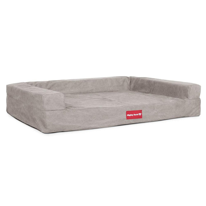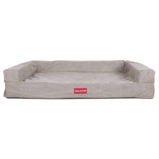 Mighty Bark "Lavička" Pelech pre psa, lôžko pre psa z ortopedickej pamäťovej peny, Stredná, Veľká, XXL Džínsovina s opotrebovaným vzhľadom Cínová– bigberthaoriginalslovakia