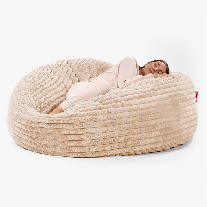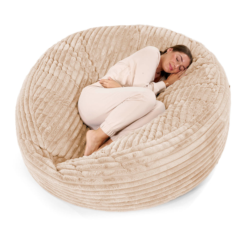 Mega mamutia pohovka sedací vak Ultra plyšový kord Broskyňová