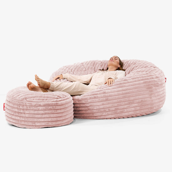 Mega mamutia pohovka sedací vak Ultra plyšový kord Prašná ružová
