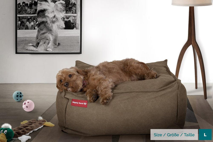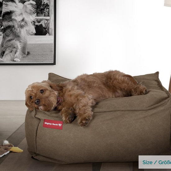 Mighty Bark "Mega-matracom" Pelech pre psa, lôžko pre psa z pamäťovej peny, Veľká, XXL Džínsovina s opotrebovaným vzhľadom Zemitá– bigberthaoriginalslovakia