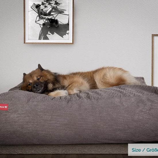 Mighty Bark "Mega-matracom" Pelech pre psa, lôžko pre psa z pamäťovej peny, Veľká, XXL Pom Pom Uhľovo šedá– bigberthaoriginalslovakia