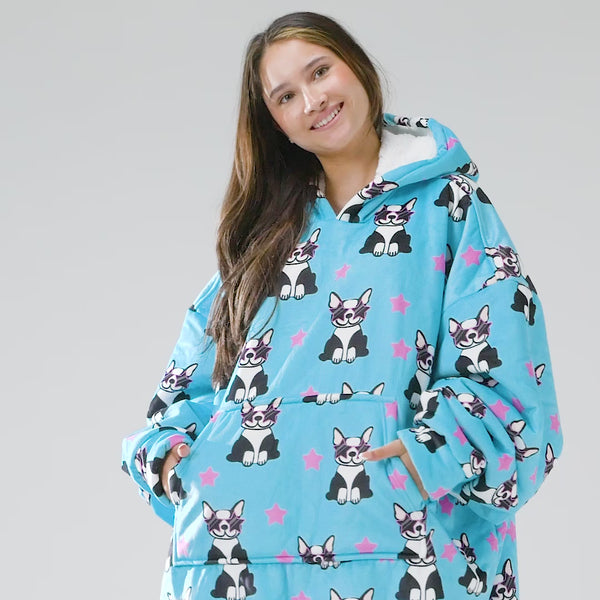 Lounge Pug, Jemné Mops Nadrozmerná mikina s kapucňou a dekou pre mužov alebo ženy– bigberthaoriginalslovakia