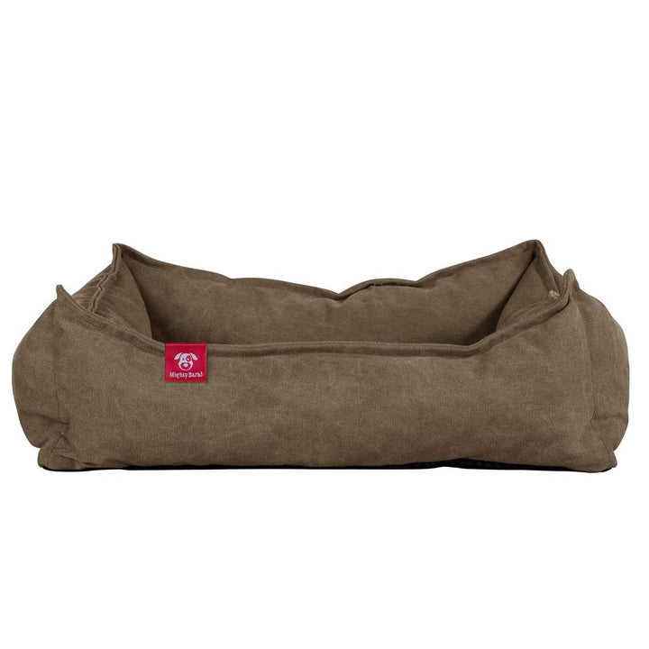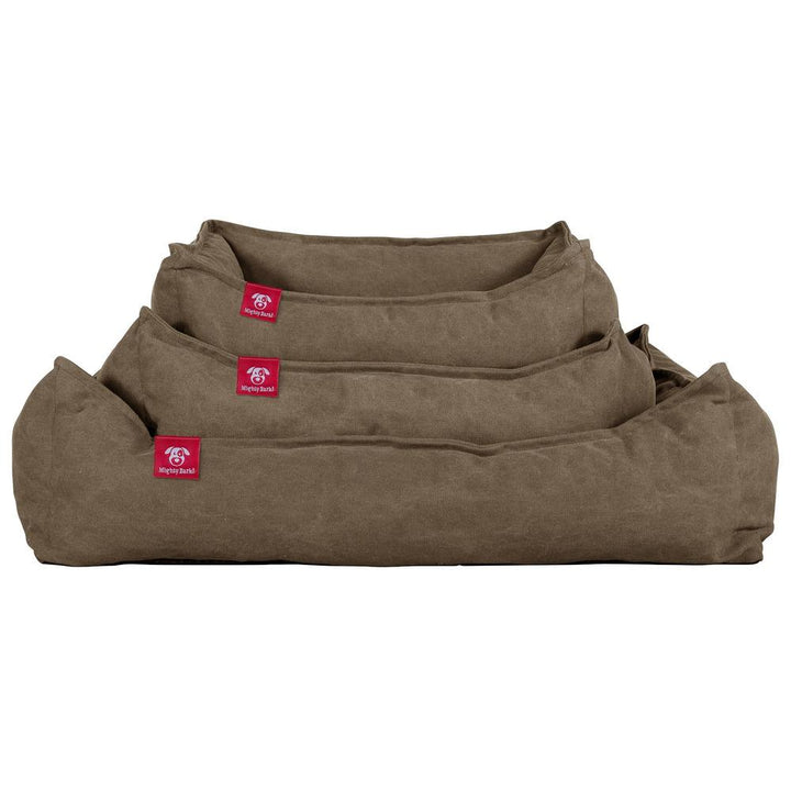 Mighty Bark "Nest" Pelech pre psa z pelechy s bočnicami, lôžko pre psa z ortopedickej pamäťovej peny, Malá, Stredná, Veľká Džínsovina s opotrebovaným vzhľadom Zemitá– bigberthaoriginalslovakia