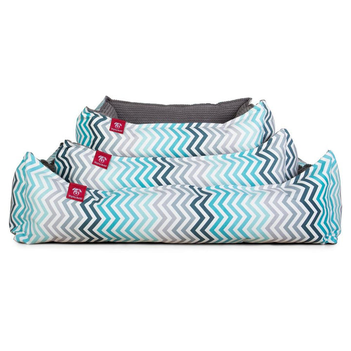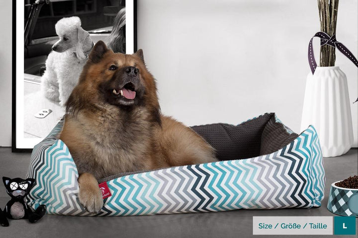 "Nest" Pelech pre psa, lôžko pre psa z ortopedickej pamäťovej peny Geo potlač Krokva Modrozelená