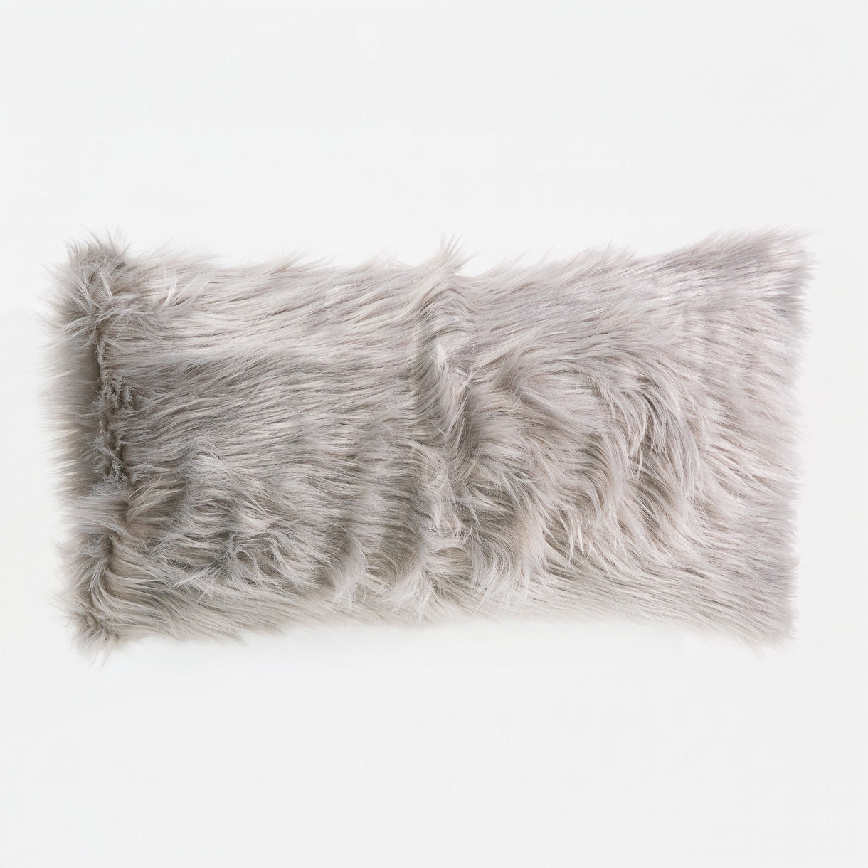 Obdĺžnikový dekoračný poťah na vankúš XL 40 x 70 cm Mongolská Umelá Kožušina Šedá
