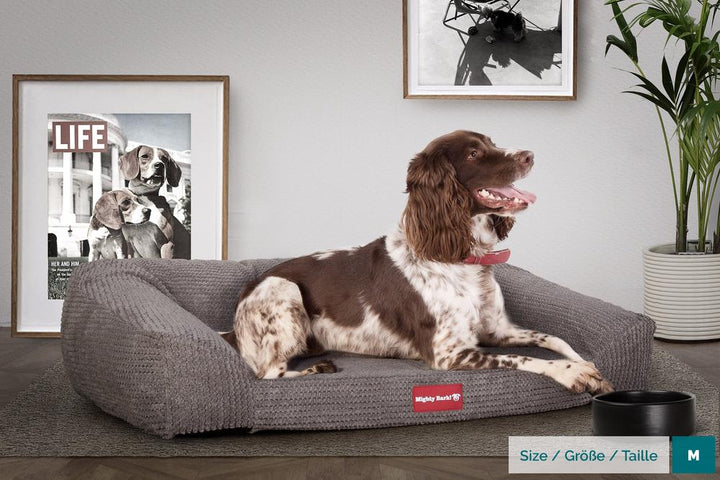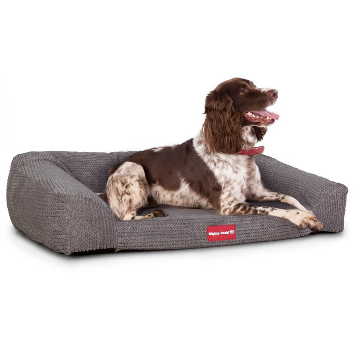 Mighty Bark "Pohovka" Pelech pre psa pohovka, lôžko pre psa z ortopedickej pamäťovej peny, Stredná, Veľká, XXL Pom Pom Uhľovo šedá– bigberthaoriginalslovakia