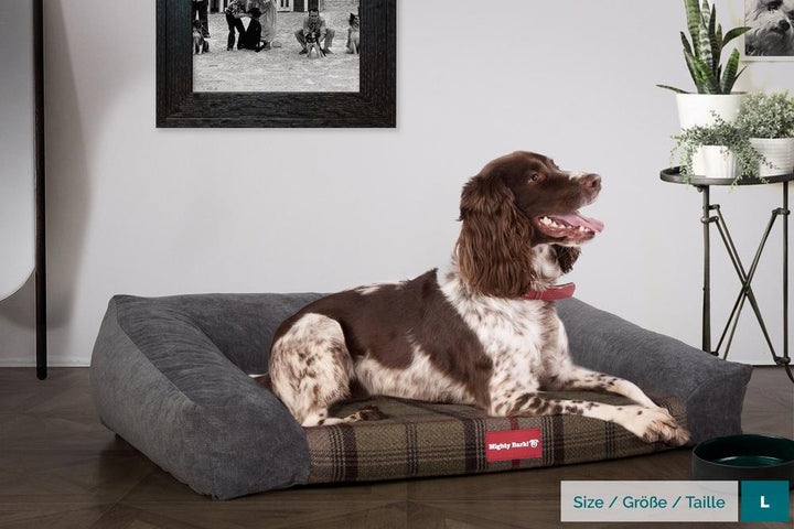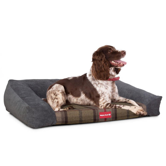 Mighty Bark "Pohovka" Pelech pre psa pohovka, lôžko pre psa z ortopedickej pamäťovej peny, Stredná, Veľká, XXL Tartan Lovecká– bigberthaoriginalslovakia