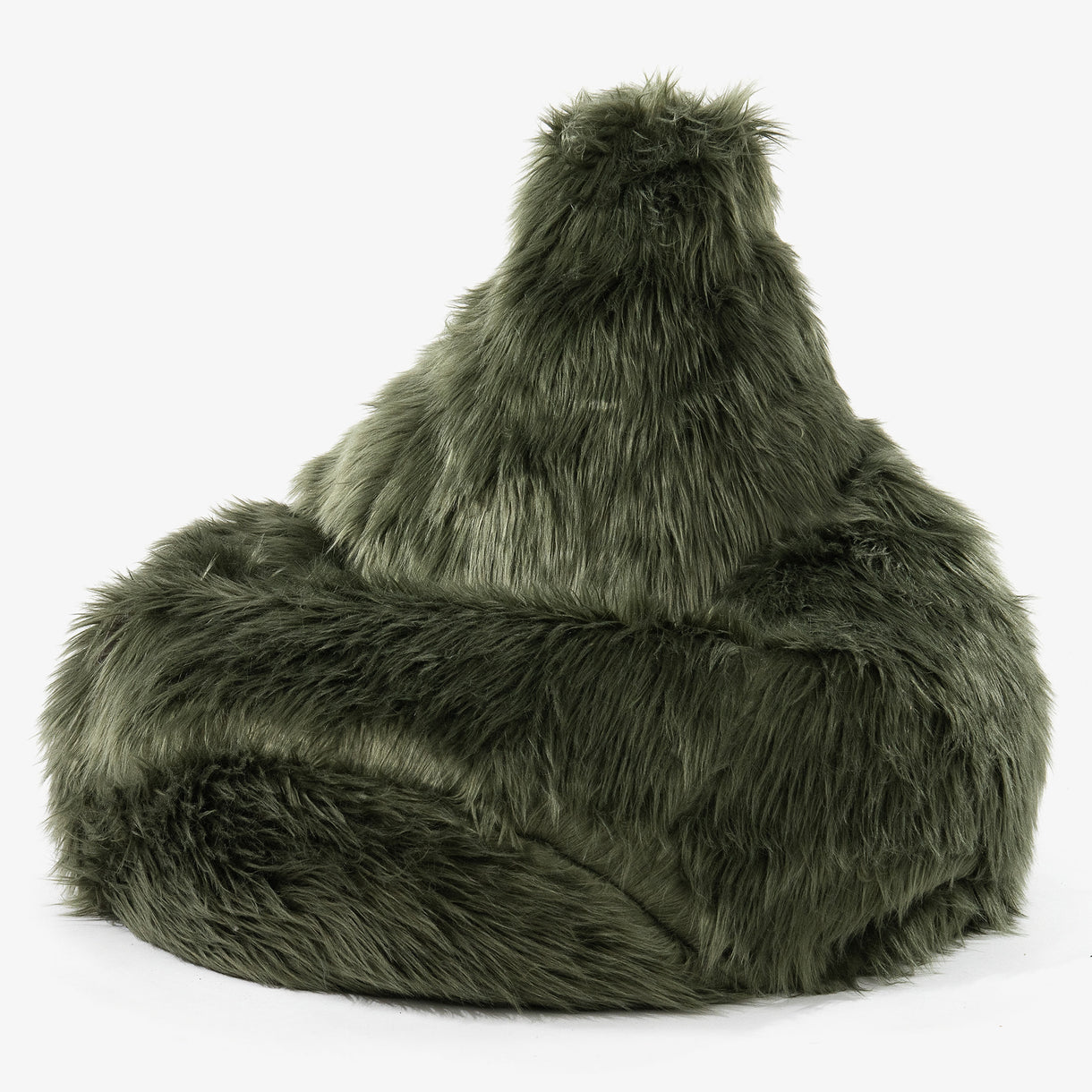 Stolička s vysokým operadlom sedací vak Mongolská Umelá Kožušina Šalviová zelená