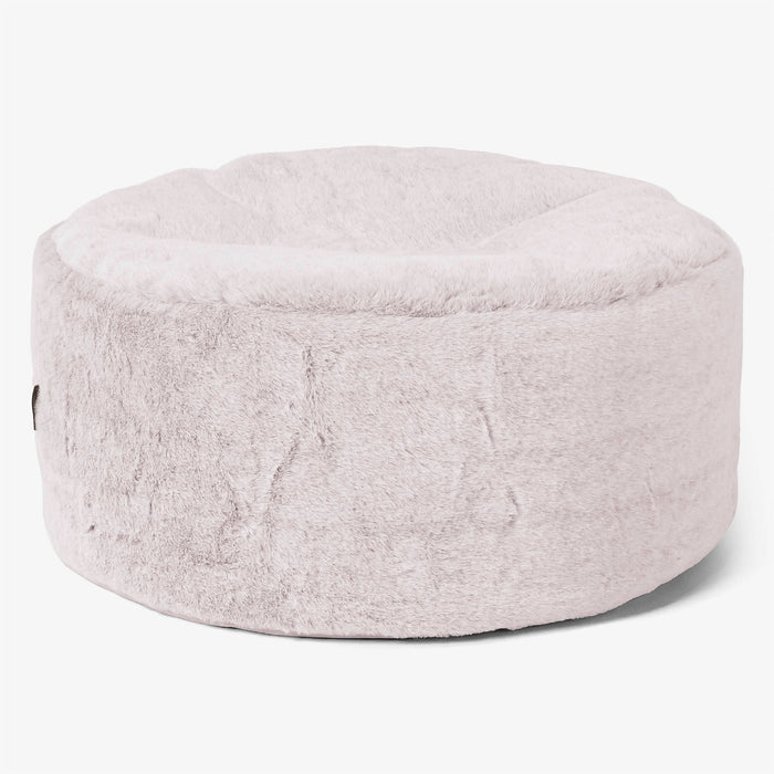 Lounge Pug Velká okrúhla podnožka Falošná králičia kožušina Prašná ružová– bigberthaoriginalslovakia